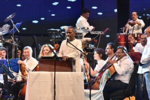 இந்நிலையில் தமது முதல் சிம்பொனி நேரடி நிகழ்ச்சி குறித்த அறிவிப்பையும், தமது எக்ஸ் தளப் பதிவில் இளையராஜா தற்போது வெளியிட்டு இருக்கிறார். அதில் “2025ம் ஆண்டு மார்ச் 8ம் தேதி லண்டனில் உள்ள அப்பல்லோ அரங்கத்தில் தமது முதல் சிம்பொனி நேரலை நிகழ்ச்சி நடைபெற இருக்கிறது” என குறிப்பிட்டுள்ளார். மேலும் டிக்கெட் விற்பனை குறித்த தகவலையும் அதில் பகிர்ந்துள்ளார் இசைஞானி.
