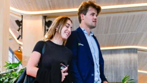 5 முறை உலக சாம்பியனான மேக்னஸ் கார்ல்சென் (34), உலக சதுரங்க அரங்கில் தவிர்க்க முடியாத ஜாம்பாவனாக ஜொலிக்கிறார். தற்போது உலகின் நம்பர் 1 செஸ் வீரராக திகழும் அவர், சக நாட்டைச் சேர்ந்த எலா விக்டோரியா மலோனை நீண்ட நாட்களாக காதலித்து வந்தார். இருவரும் ஒன்றாக சுற்றும் புகைப்படங்கள் ஊடகங்களில் அவ்வப்போது வெளியாகி உள்ளன. 26 வயதான விக்டோரியா மலோன், நார்வே தாய் மற்றும் அமெரிக்க தந்தைக்கு பிறந்தவர் ஆவர்.