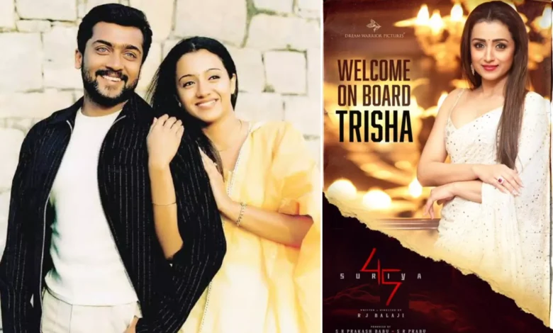 இந்நிலையில் சூர்யா 45 படத்தின் அடுத்த அப்டேட்டை படக்குழு அதிரடியாக வெளியிட்டுள்ளது. அதில் படத்தின் நாயகியாக நடிகை திரிஷா நடிக்க இருப்பதாக தகவல் வெளியிடப்பட்டு இருக்கிறது. ஏற்கனவே சூர்யா – திரிஷா ஜோடியாக நடித்த “மௌனம் பேசியதே”, “ஆறு”
