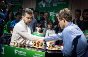 இந்நிலையில் உலக செஸ் பிளிட்ஸ் ஓபன் பிரிவில் நடந்த இறுதிப் போட்டியில், உலக நம்பர் 1 வீரரான நார்வேயின் மேக்னஸ் கார்ல்சன் – ரஷ்யா வீரர் இயான் நெபோம்னியாட்சி மோதினர். 3 ஆட்டங்கள் ஆடியும் வெற்றியாளரை தீர்மானிக்க முடியாததால் இருவரும் சாம்பியன்ஷிப்பை பகிர்ந்து கொள்வதென முடிவெடுத்தனர். அதற்கு உலக செஸ் நிர்வாக அமைப்பான ஃபிடே ஒப்புக் கொண்டதால் இருவரும் கூட்டு சாம்பியன்களாக அறிவிக்கப்பட்டனர். செஸ் பிளிட்ஸ் வரலாற்றில் முதல் முறையாக இருவர் சாம்பியன்களாக அறிவிக்கப்பட்டது குறிப்பிடத்தக்கது.